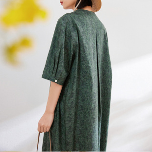 纯棉印花大A型小个子裙子 新品 蒲PUKKA 文艺风连衣裙女夏季