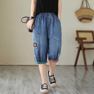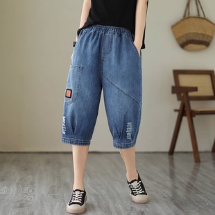重工烫钻牛仔裤 安妮不火梵高星月遮胯显腿长阔腿牛仔裤 女微胖大码