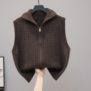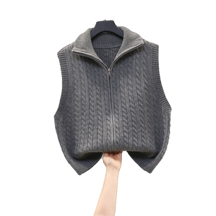 万有引力博物馆 叠穿针织背心女春秋宽松外穿毛衣学院风毛线马甲