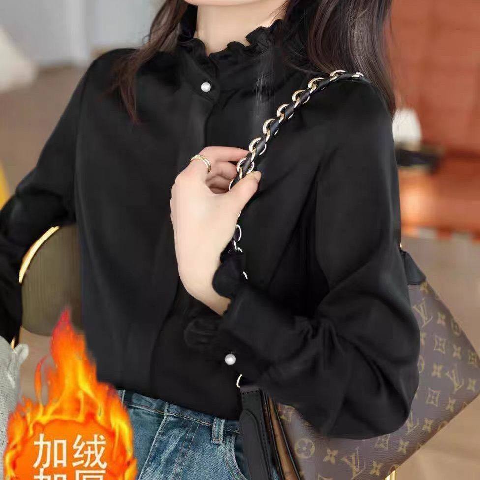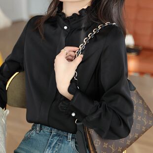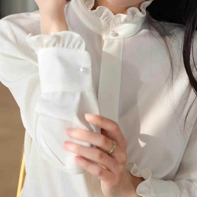 高级感别致立领甜美小衫 法式 早秋新款 女装 通勤百搭上衣 木耳边衬衫