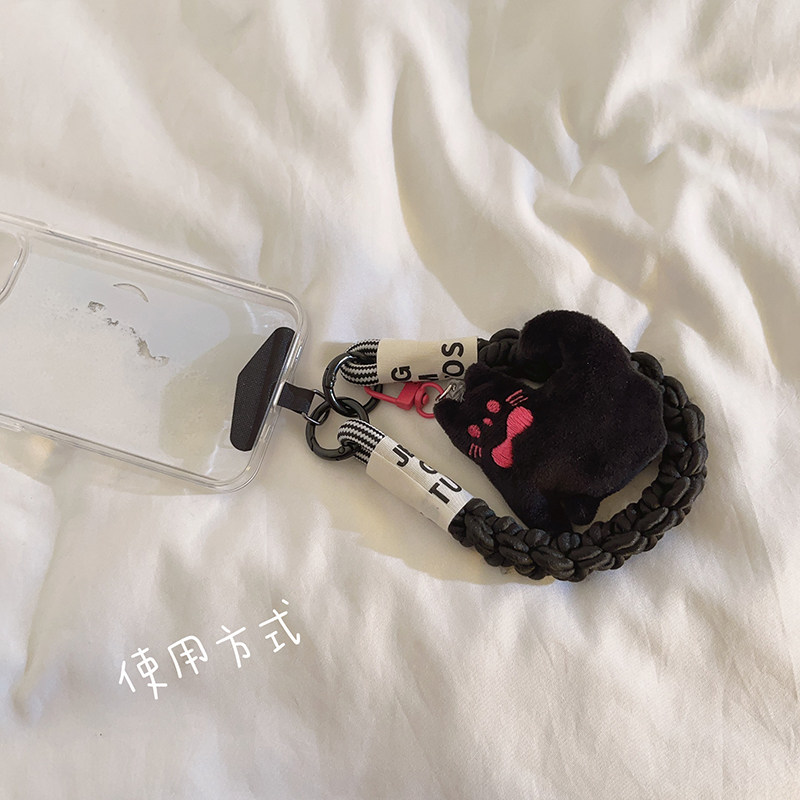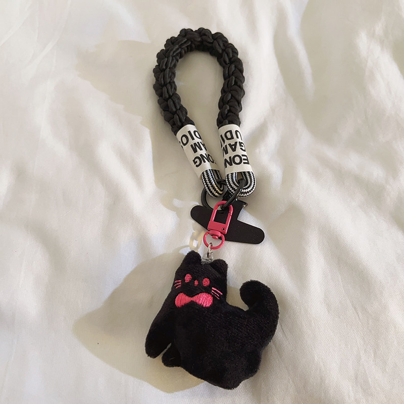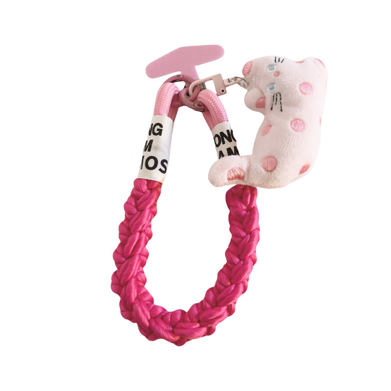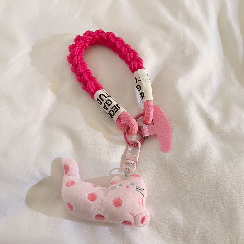 趣味卡通粉波点猫挂件编织尼龙手绳适用手机壳百搭ins可爱女款 书包学生挂链便携腕带手环CCD车钥匙扣耳机配饰