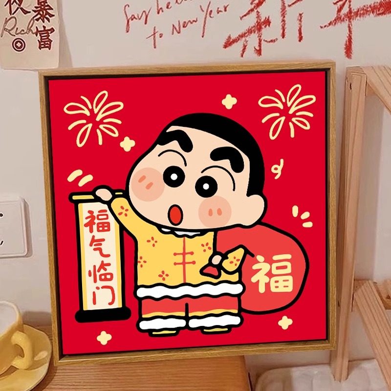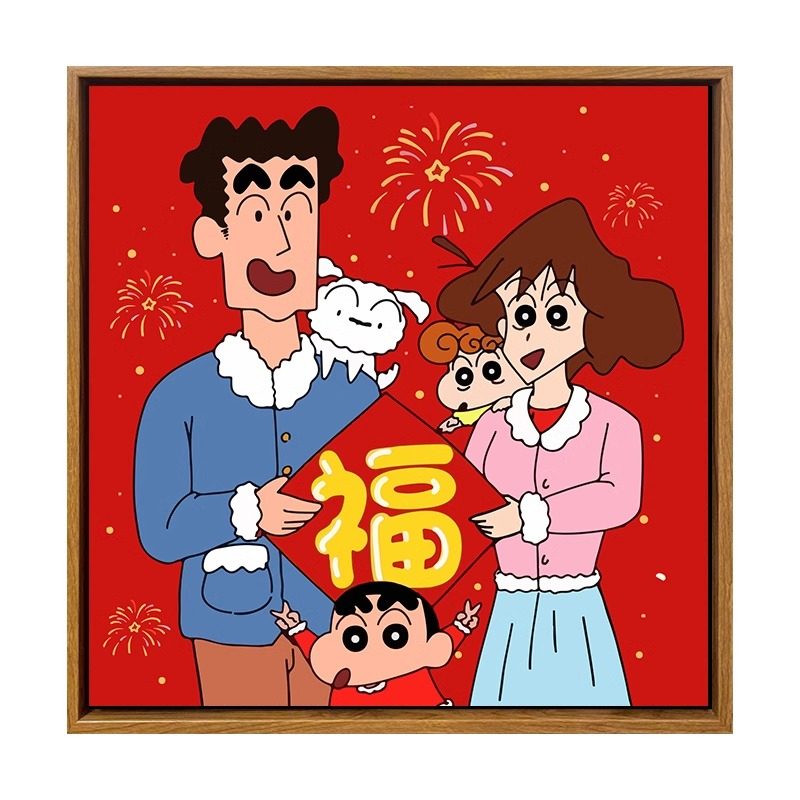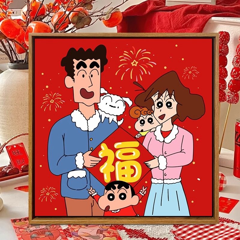 新年蜡笔小新数字油画diy手工手绘填色全家福儿童卡通丙烯油彩画