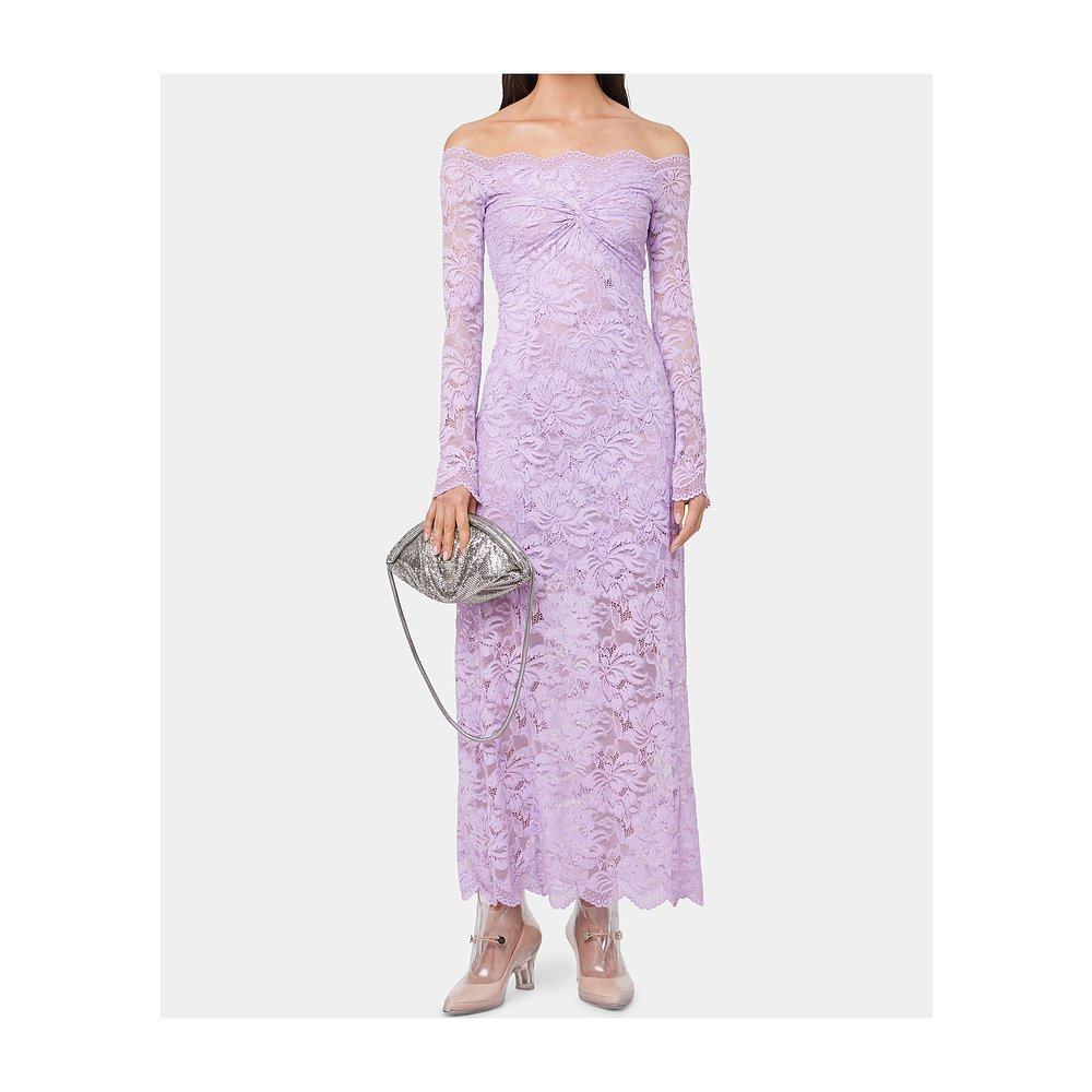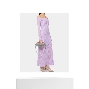气质长款 蕾丝V领温柔风收腰显瘦大裙摆长袖 连衣裙 薄雾云纱 白里