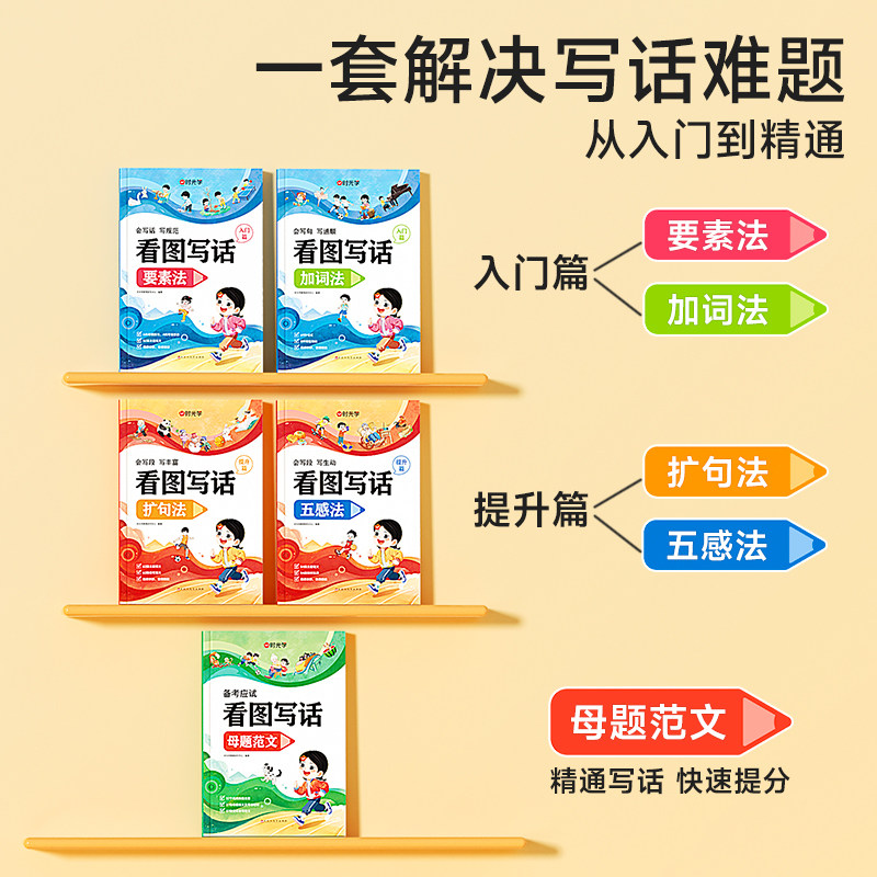 全国通用入门篇加词法要素法提升篇五感法扩句法母题范文全套学生写作方法技巧教辅书籍 2025看图写话小学一二年级注音版 时光学
