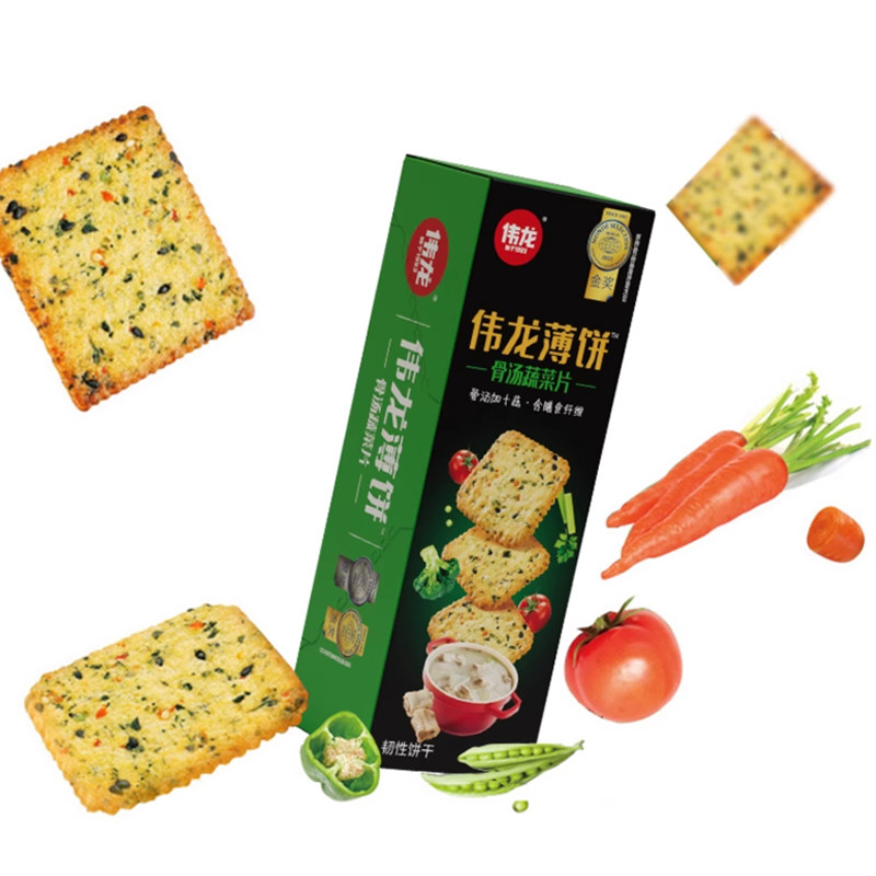 伟龙薄饼90g香葱鸡片骨汤蔬菜味烤可可片饼干休闲零食小吃食品
