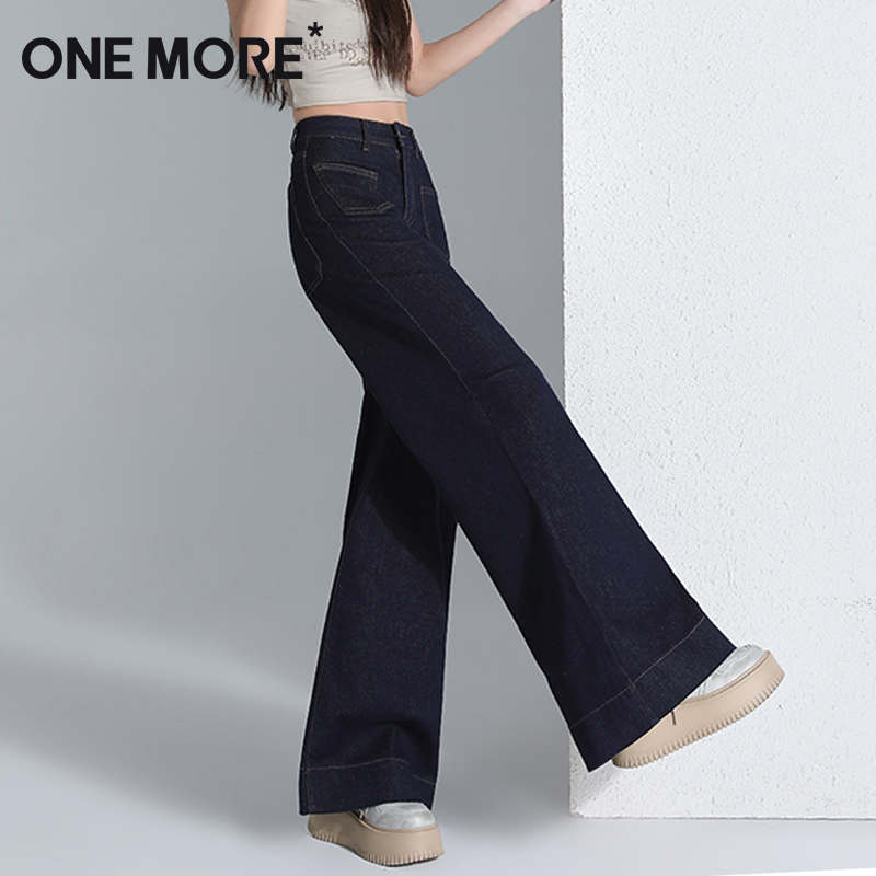直筒显瘦拖地长裤 one 阔腿A字高腰裤 女2025新款 more深蓝色牛仔裤