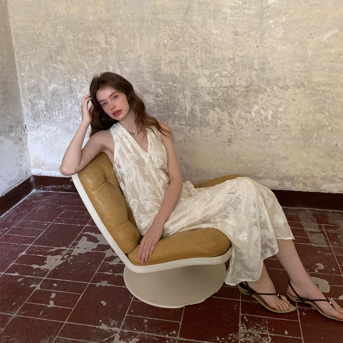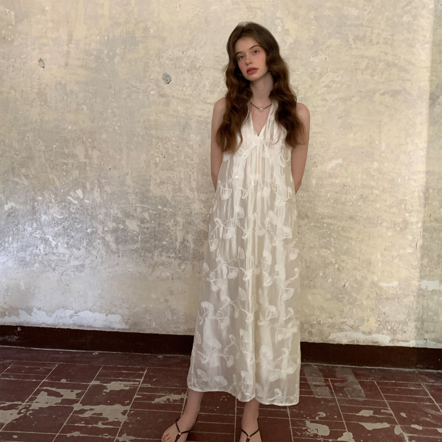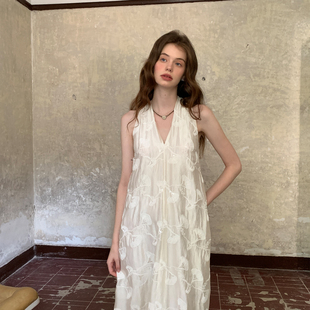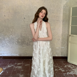 连衣裙女夏显瘦长裙露背性感修身 ZHUYIYI 醋酸白色挂脖无袖