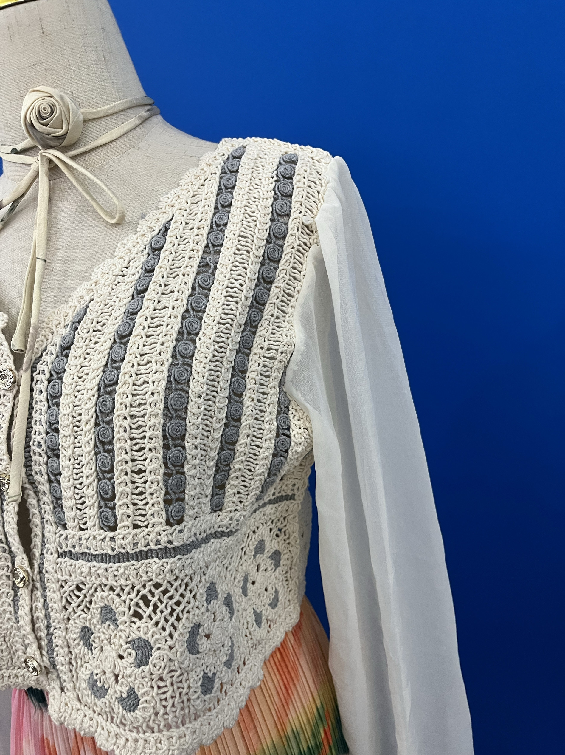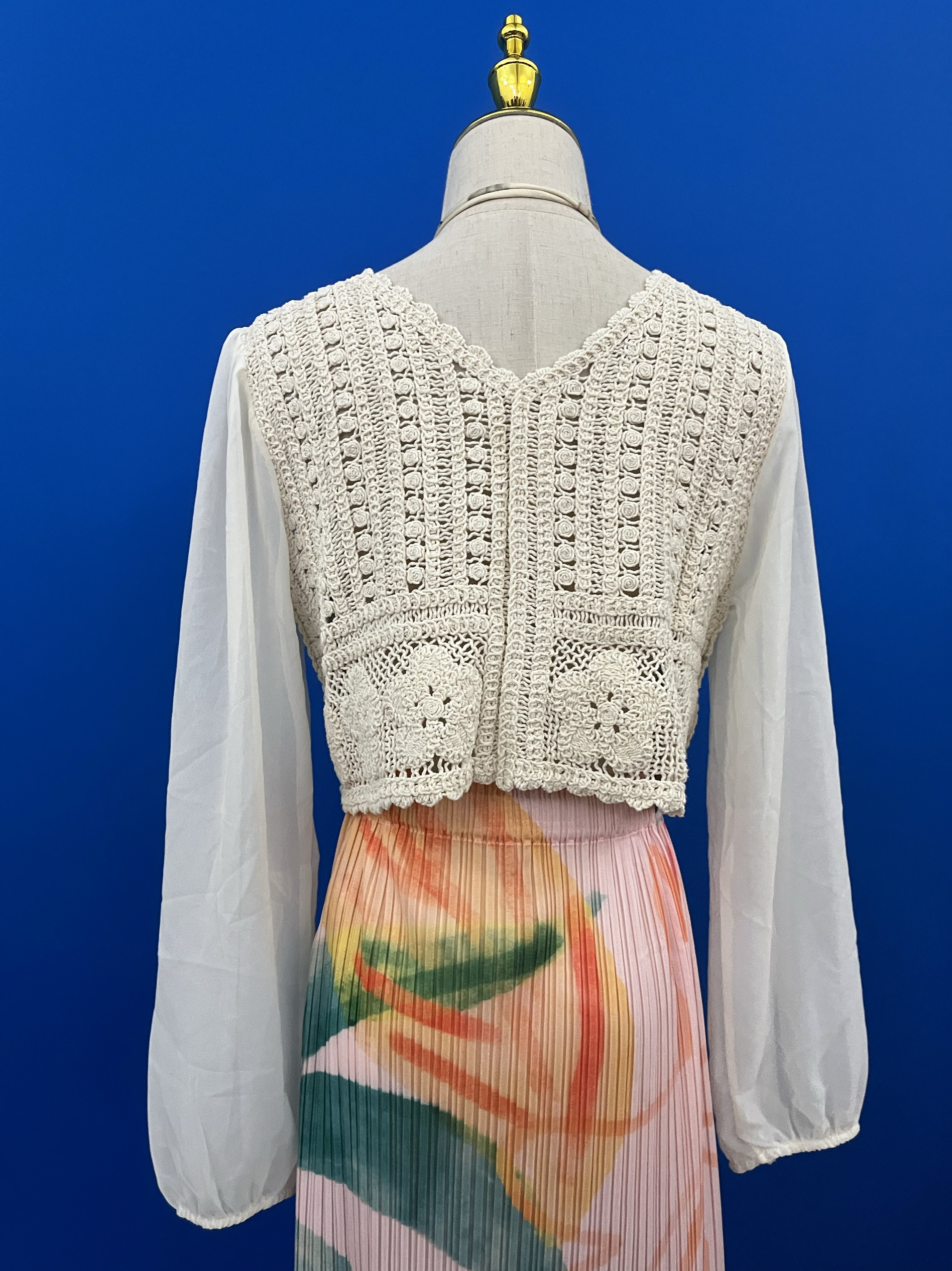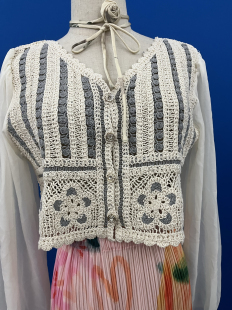 罩衫 高腰针织开衫 V领短款 北纬8度复古系宫廷风钩花镂空上衣女秋季