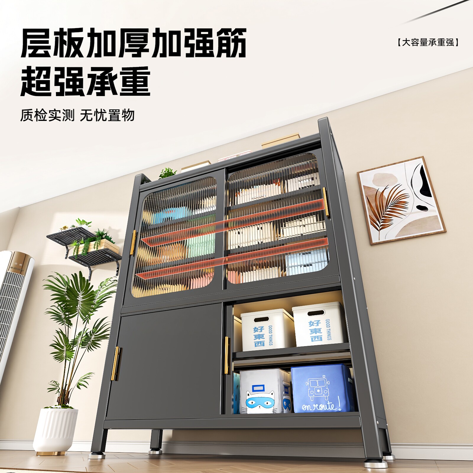 家用钢制阳台储物柜一体靠墙落地柜推拉门收纳柜多功能杂物置物架