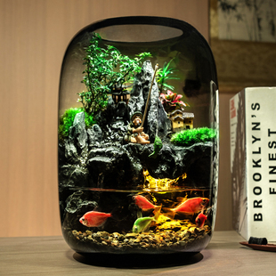 大号流水养鱼缸微景观玻璃花瓶植物客厅办公桌装 饰摆件苔藓造景
