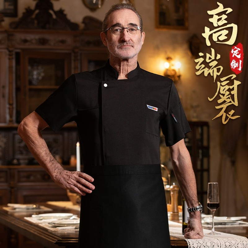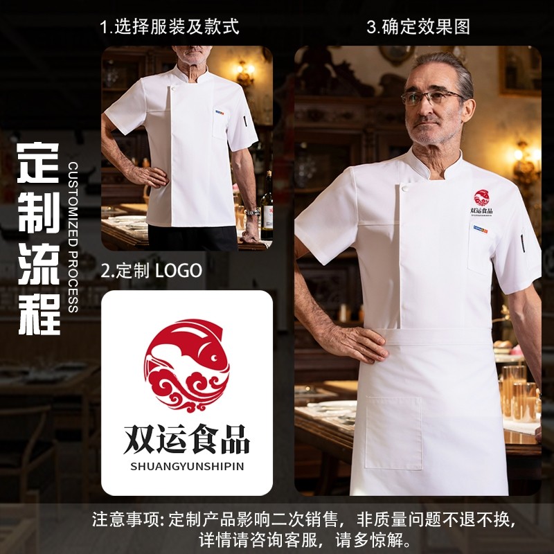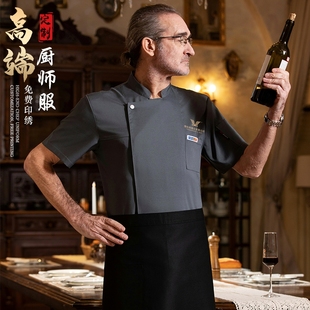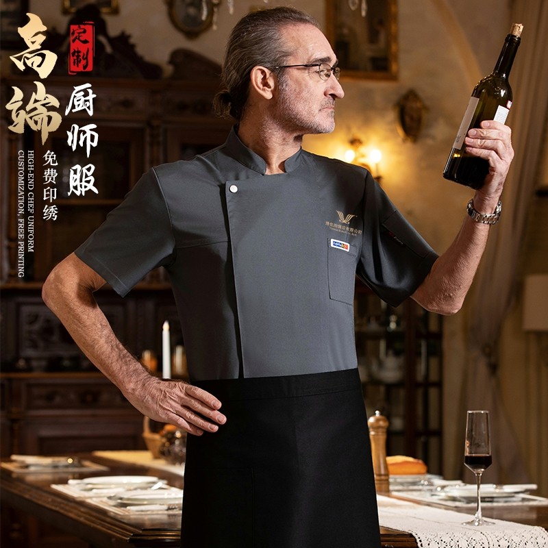 男餐厅饭店食堂厨房烘焙蛋糕工衣 国旗厨师工作服短袖 夏季 透气薄款