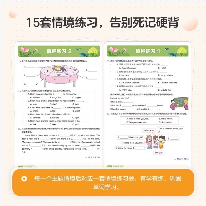 星火小学英语单词汇总表速记卡自然拼读记背单词情境秒记书小升初语法专项一二年级三四年级五六年级高频词汇记忆本