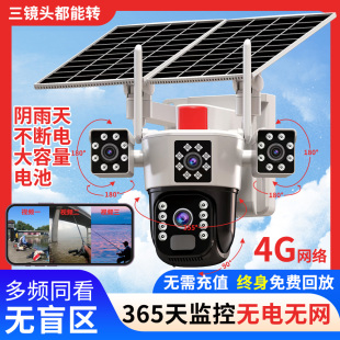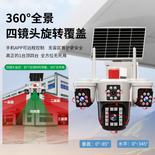 太阳能摄像头360度无死角手机远程无需网络室外夜视四画面监控器