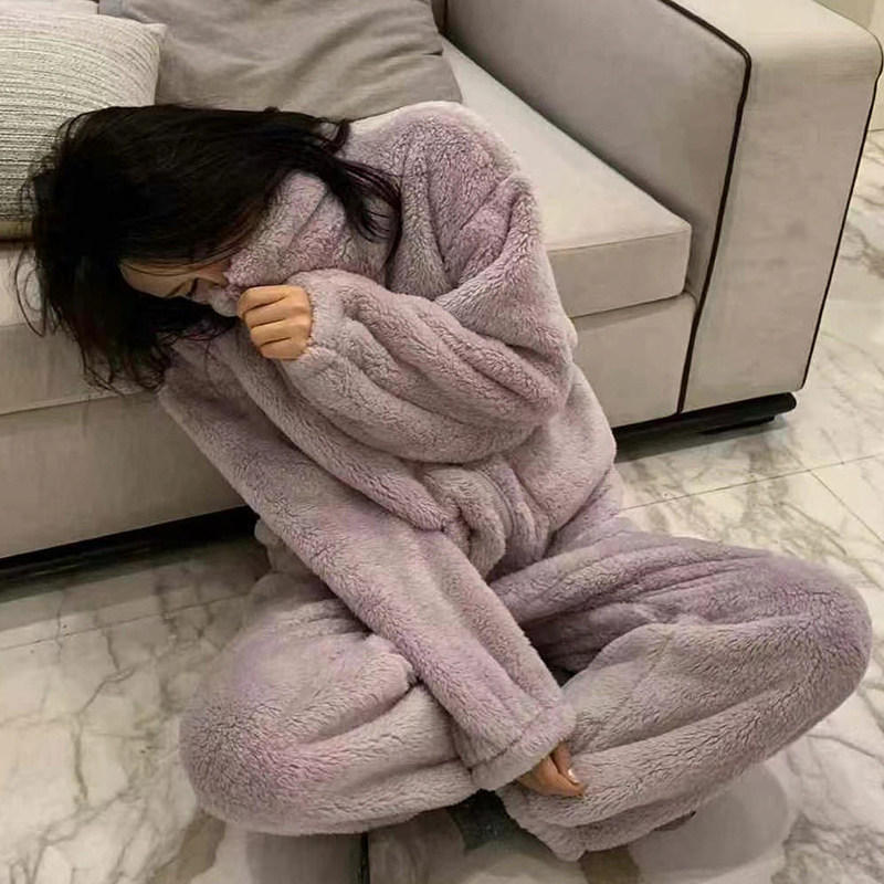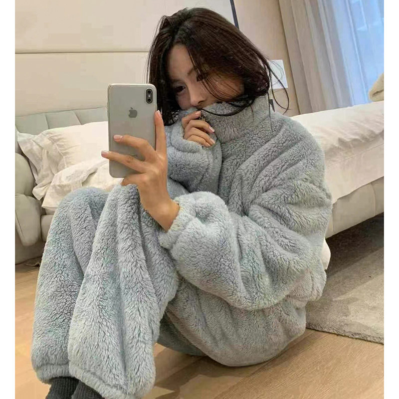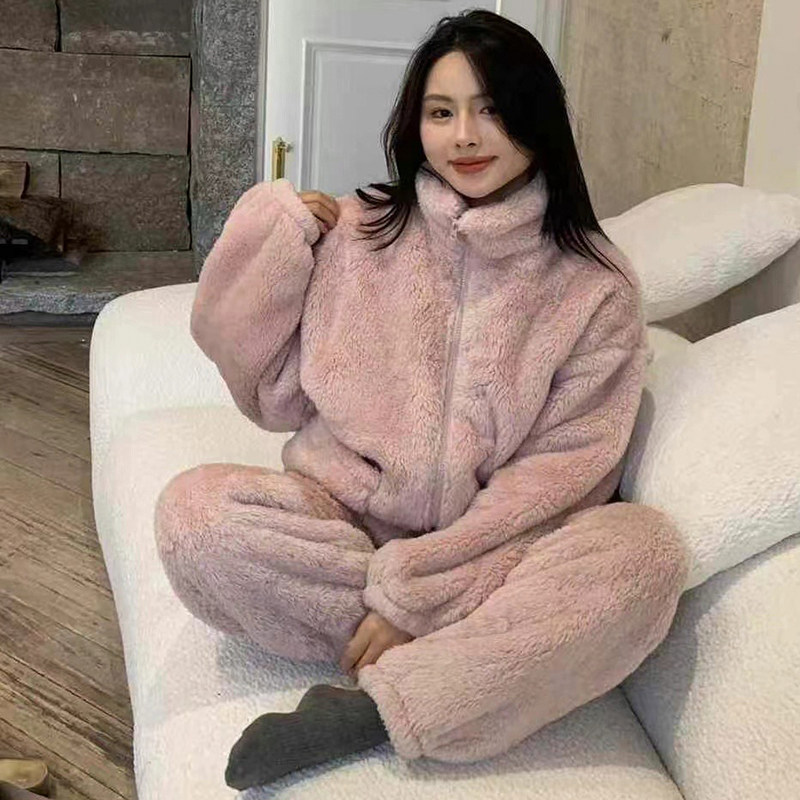 加绒加厚保暖法兰绒休闲家居服套装 珊瑚绒立领睡衣女冬季 2025新款