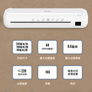 得力33939塑封机家用小型A4办公文件覆膜机压膜6寸相片照片过塑机