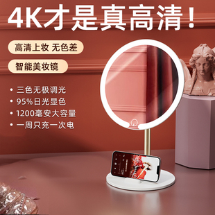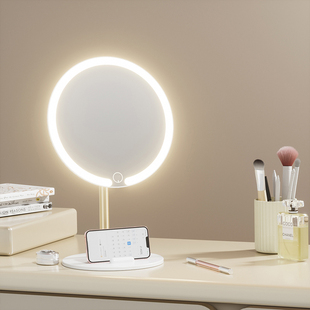 2025新款 桌面带灯学生家用补光镜 带化妆收纳筒LED镜子化妆镜台式