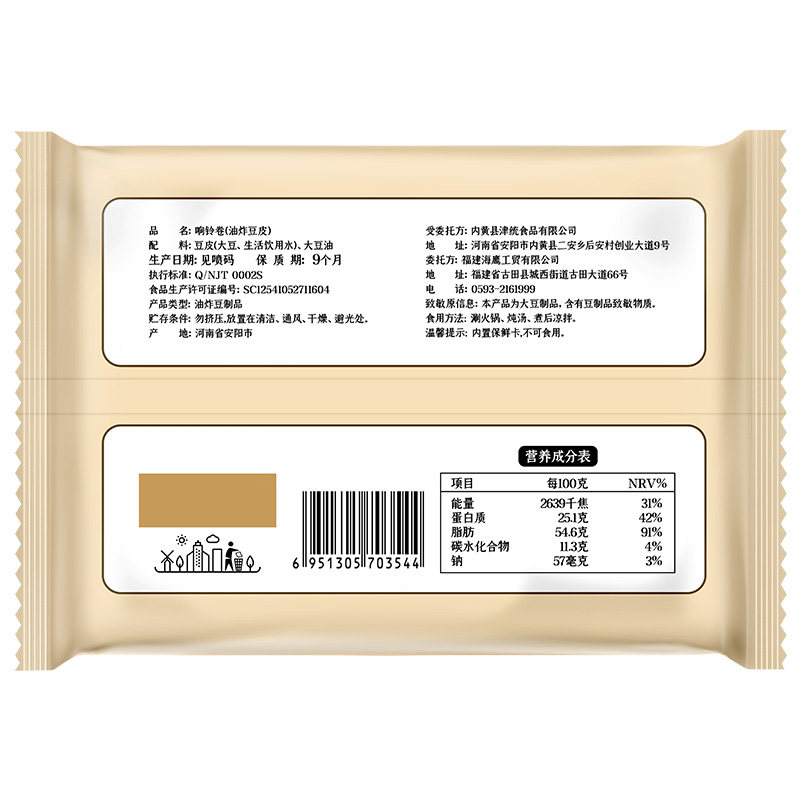银京精品响铃卷120g豆皮卷油炸腐竹火锅食材螺蛳粉豆制品