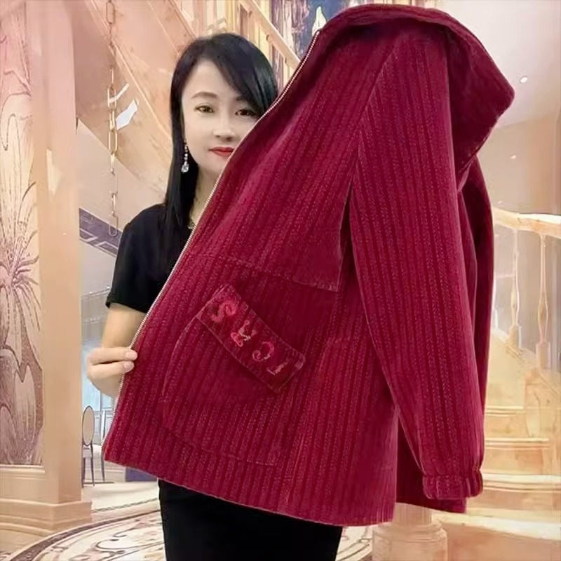 特大码 300斤外套女中老年秋冬胖mm加厚休闲连帽外衣宽松妈妈上衣