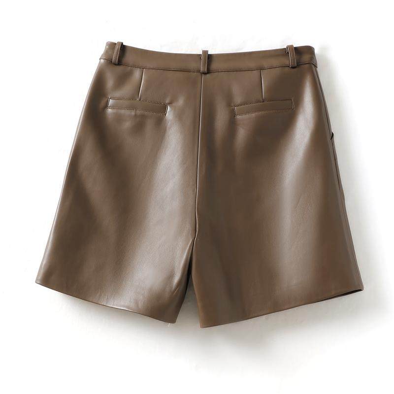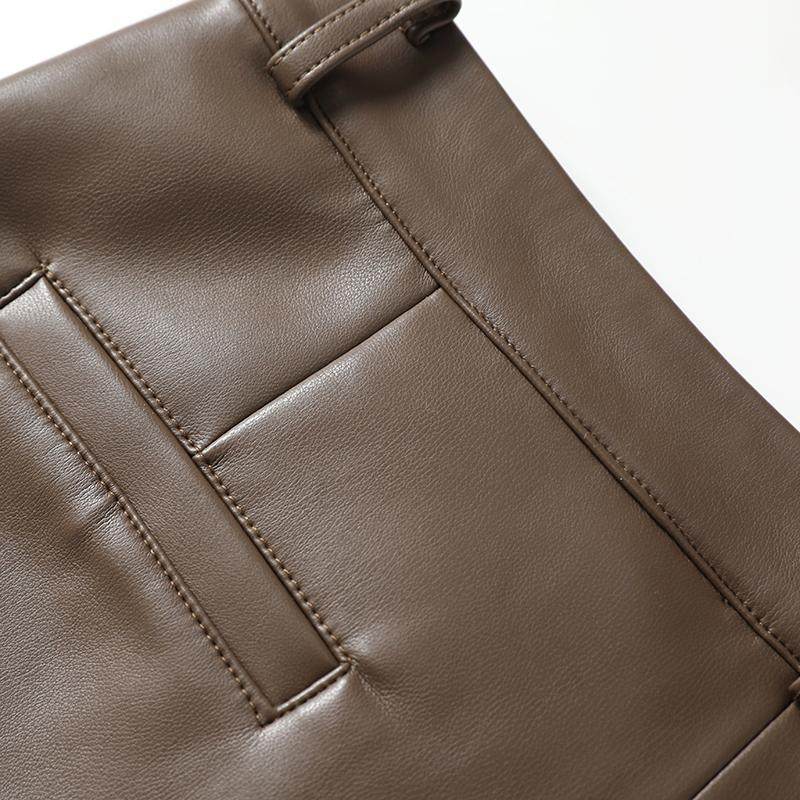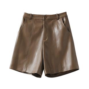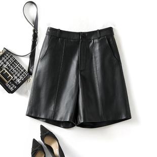 秋冬百搭皮靴裤 2025新款 女高腰绵羊皮宽松五分阔腿裤 海宁真皮短裤