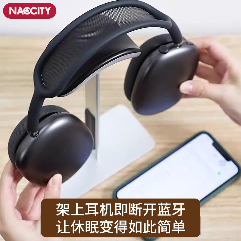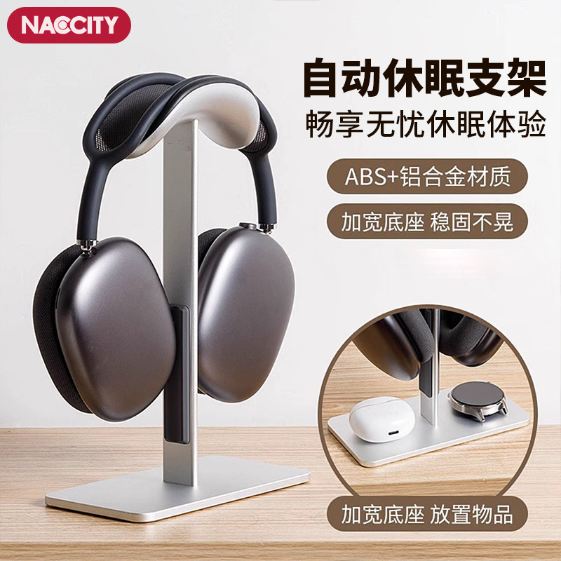 适用airpodsmax耳机休眠支架苹果AirPodsmax2代头戴式 挂架配件收纳磁吸铝合金自动休眠桌面电脑游戏耳麦支架
