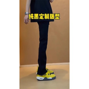 大童 子加绒高街vibe直筒微喇裤 纯黑色弯刀牛仔裤 男秋冬cleanfit裤