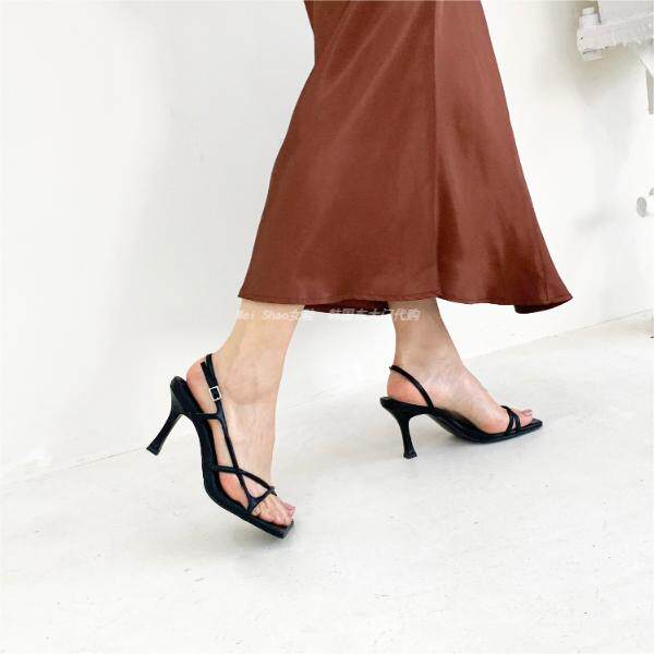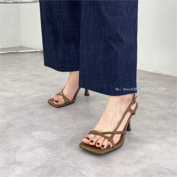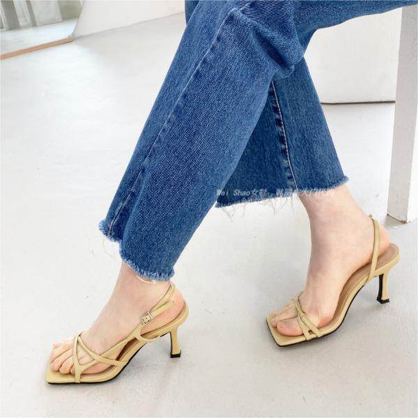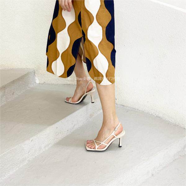韩国东大门春夏时尚 女 气质显瘦细带露趾皮带扣一字带细高跟凉鞋