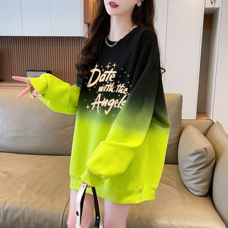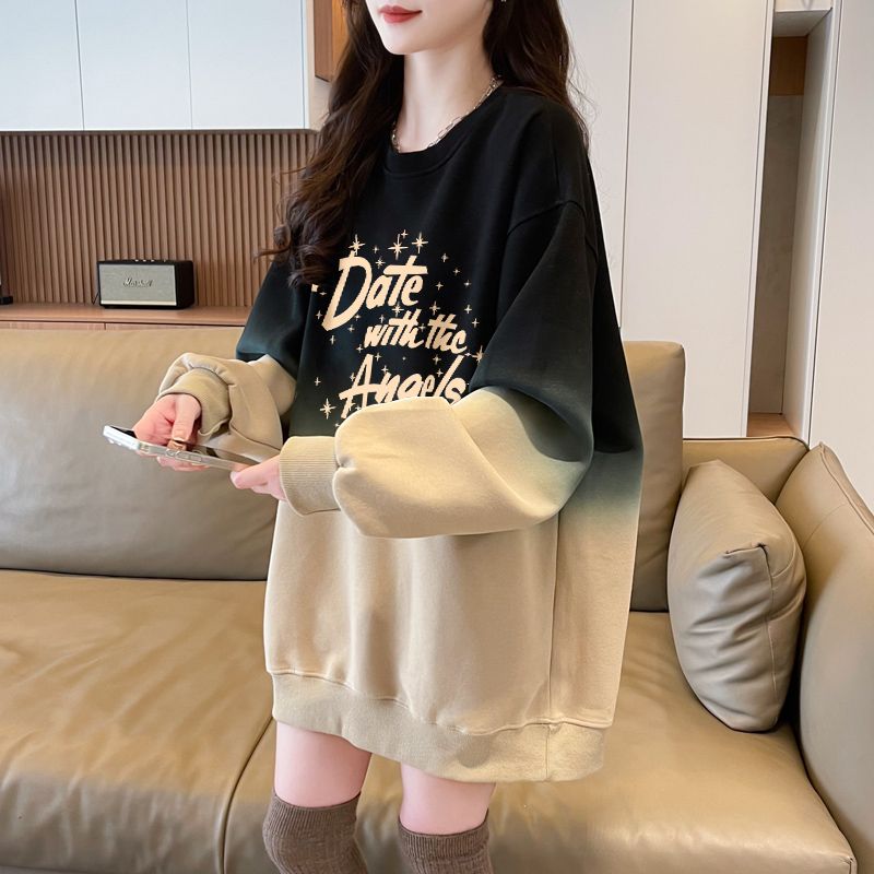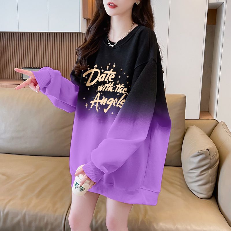 时尚 大码 洋气中长上衣 超好看渐变色圆领卫衣女2025春秋款 欧货大版