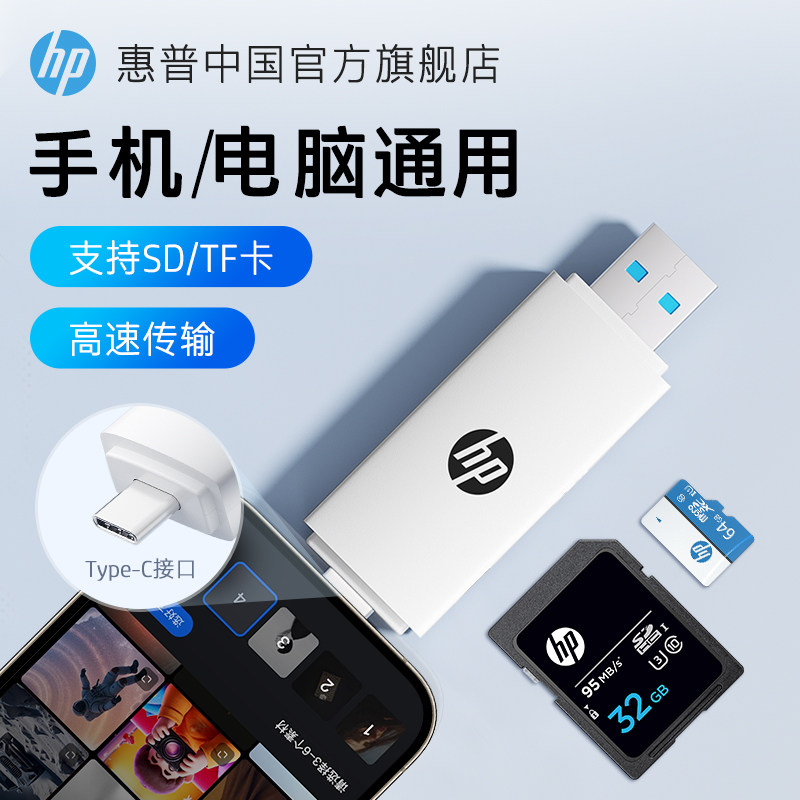 HP惠普多合一sd卡相机读卡器tf内存储卡usb读取器连接手机电脑安卓苹果华为type c通用高速佳能索尼ccd转换器