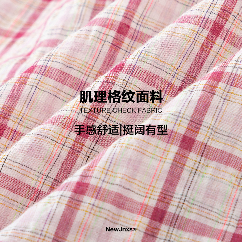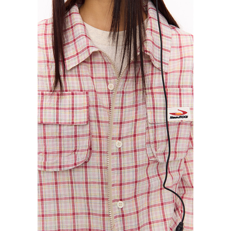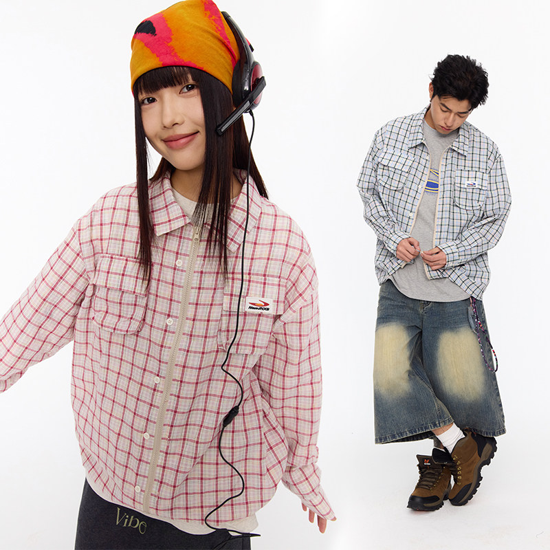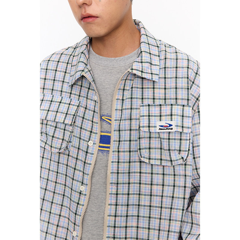 江南先生NewJNXS美式 春秋情侣宽松外套 复古刺绣毛毡格纹两穿衬衫