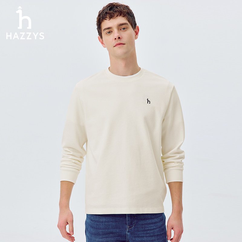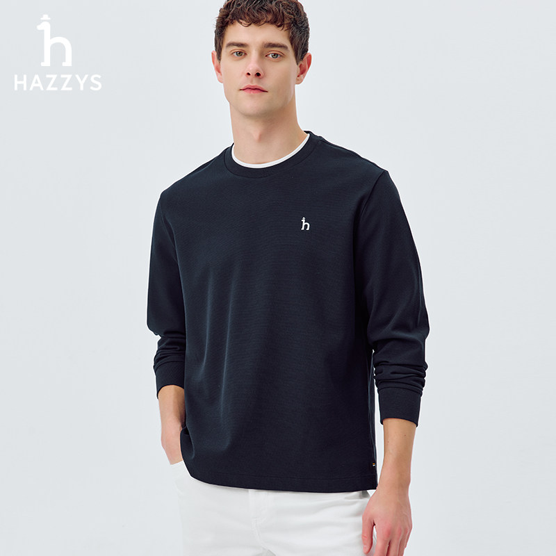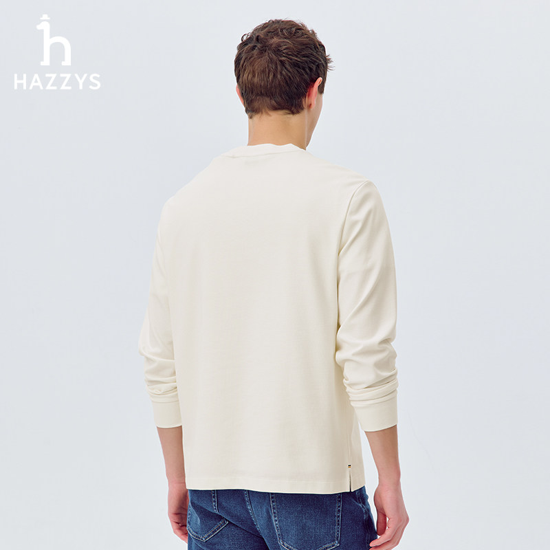 纯色T恤潮流时尚 圆领休闲长袖 套头上衣 男装 Hazzys哈吉斯春夏季