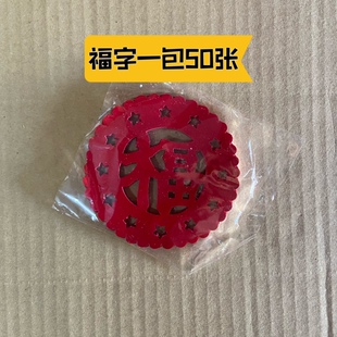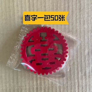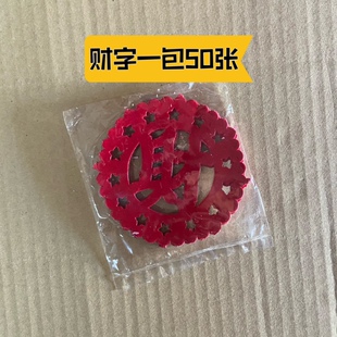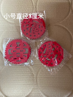 潮汕节庆用品装 饰五生花蜡光喜字财字福字剪纸菜花贴纸直径8厘米