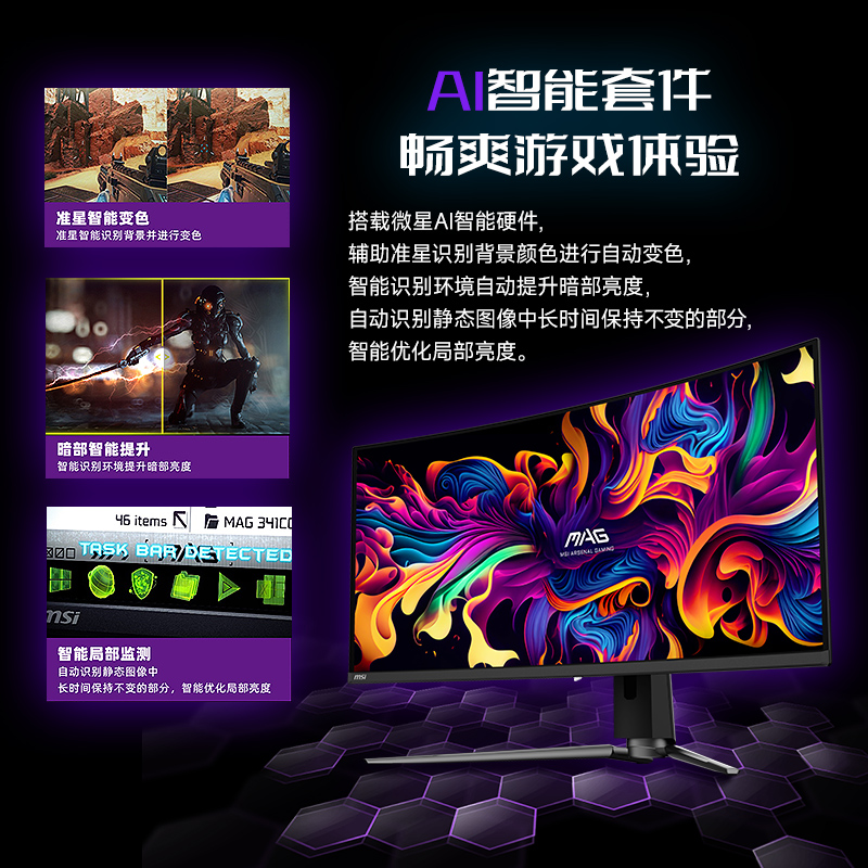 微星34英寸准4K240HZ电竞电脑显示器流光MPG341CQPXQD OLED曲面屏