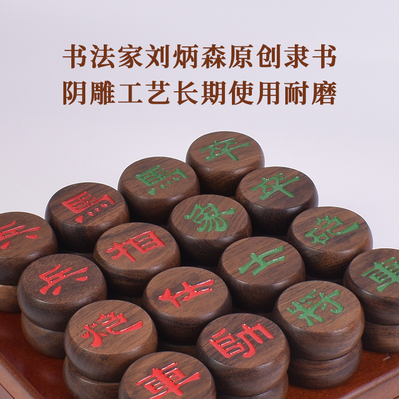 象棋中国象棋儿童实木带木质棋盘成人大号便携式 棋子金丝楠木黑檀