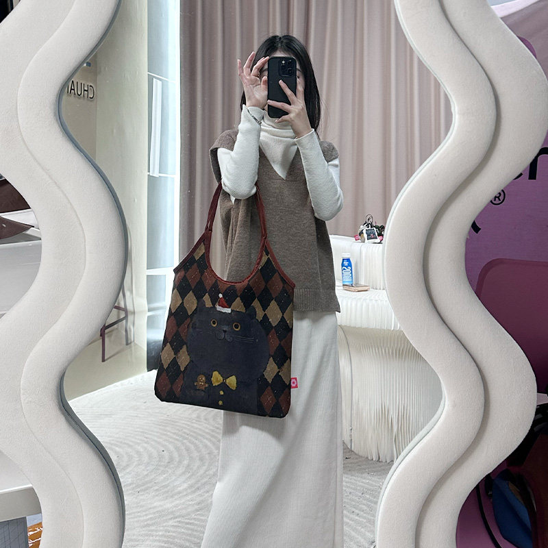 独特设计感包包女针织毛线编织包流苏拼接度假休闲手提单肩托特包