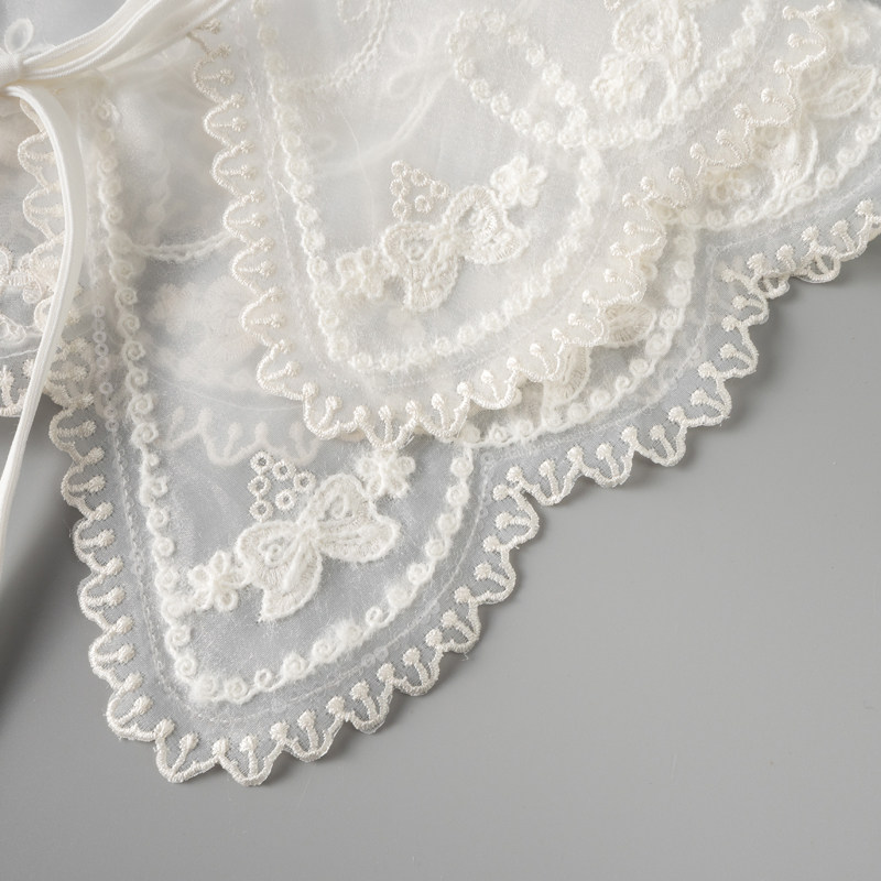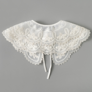 领先生外搭小披肩装 假衣领毛线绣花蕾丝领百搭 饰领双层欧根纱衬衫