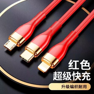 240W充电线一拖三usb快充线手机充电线6A冲适用苹果15 17华为荣耀120w多头200w三头超级快充多功能通用