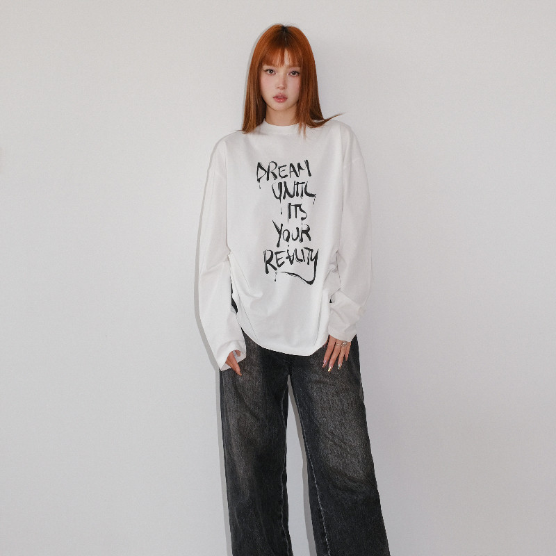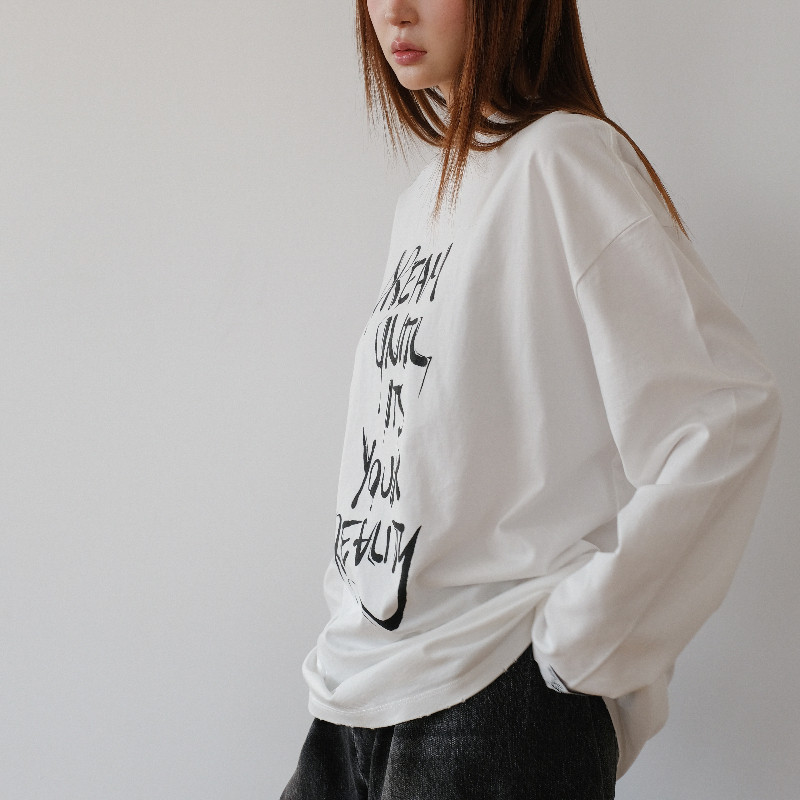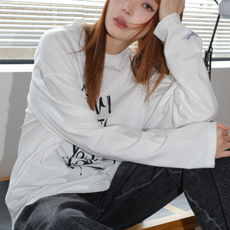 长袖 concise 女士白色棉质标语短款 简白 T恤上衣301257 white