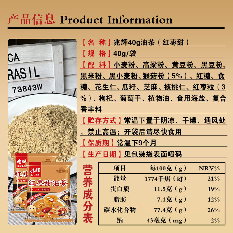 山西特产兆辉油茶面粗粮香甜红枣甜油炒面坚果营养早餐代餐粉
