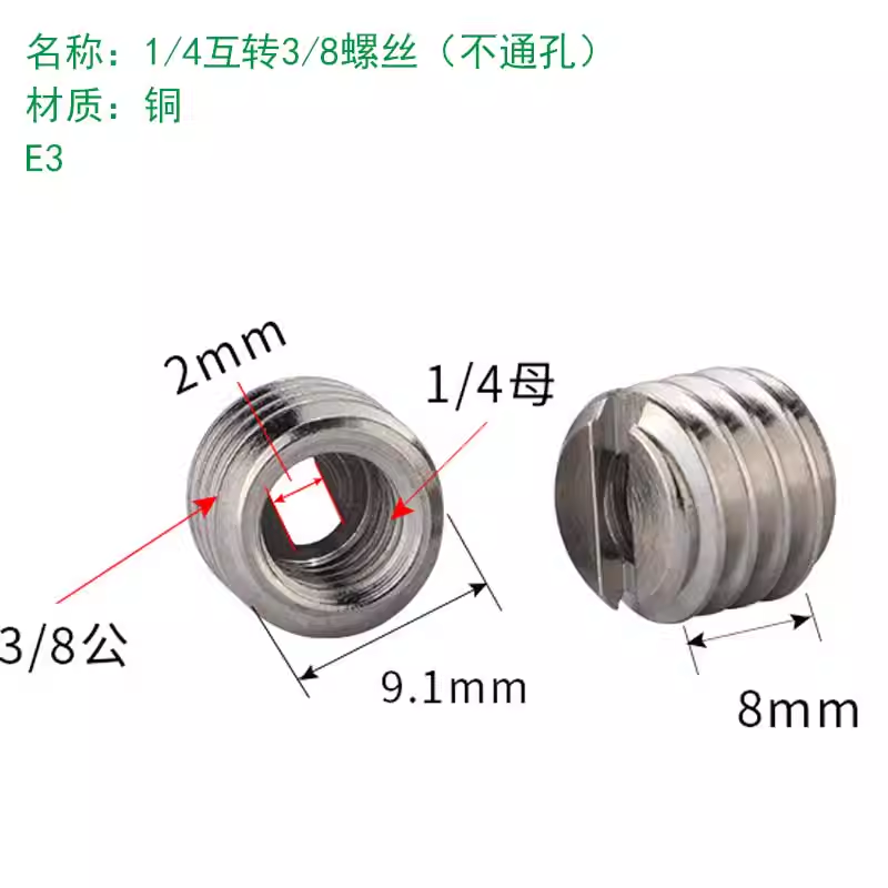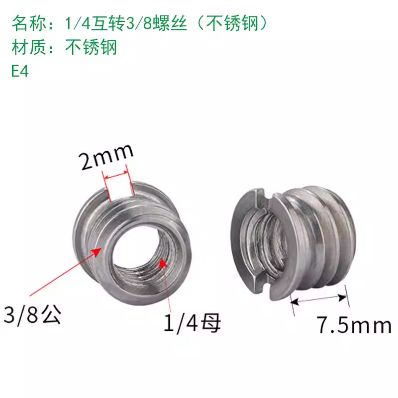 8螺母云台支架不锈钢铜 4转3 相机三脚架快装 板转换螺丝转接螺帽1