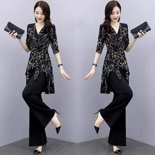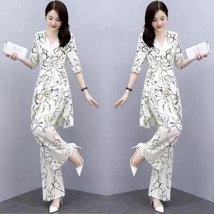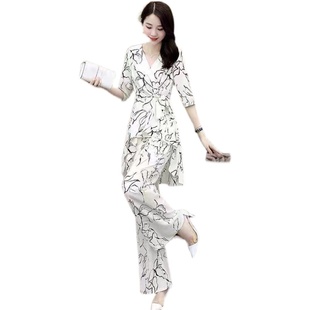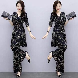 阔腿裤 减龄显瘦气质两件套裙裤 女2025夏季 女装 潮 新款 印花洋气套装