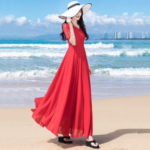 沙滩裙2025年秋冬新款 蕾丝大摆连衣裙收腰显瘦旅游度假长裙雪纺裙