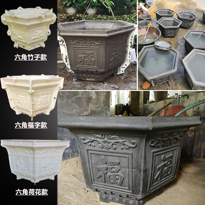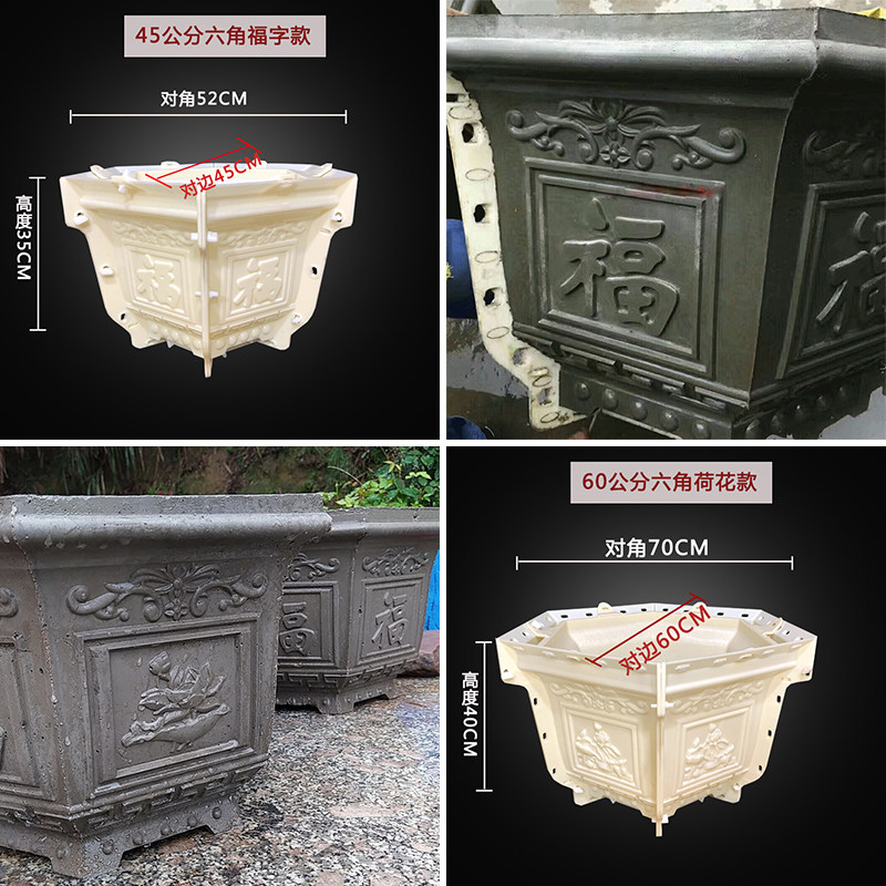 六角花盆模具水泥盆自制大码 模型塑料花盘种树大号方形园林盆景