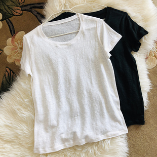 商品标签:新款白色t亚麻短袖