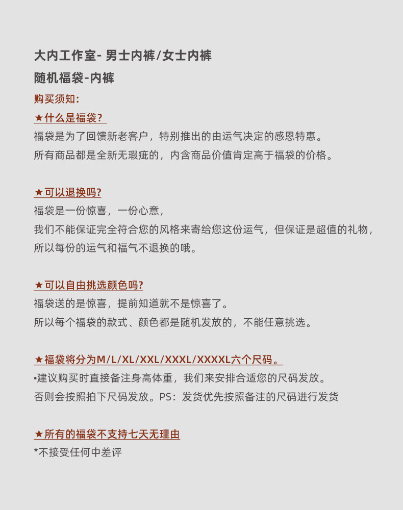 福袋产品 或者6条女内裤 男内裤 所属于活动仅限于大内 6条装