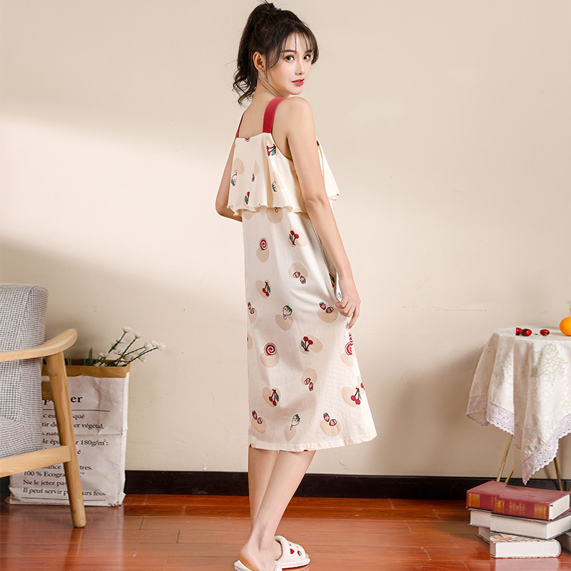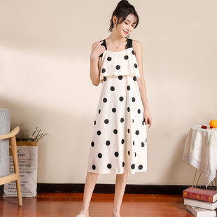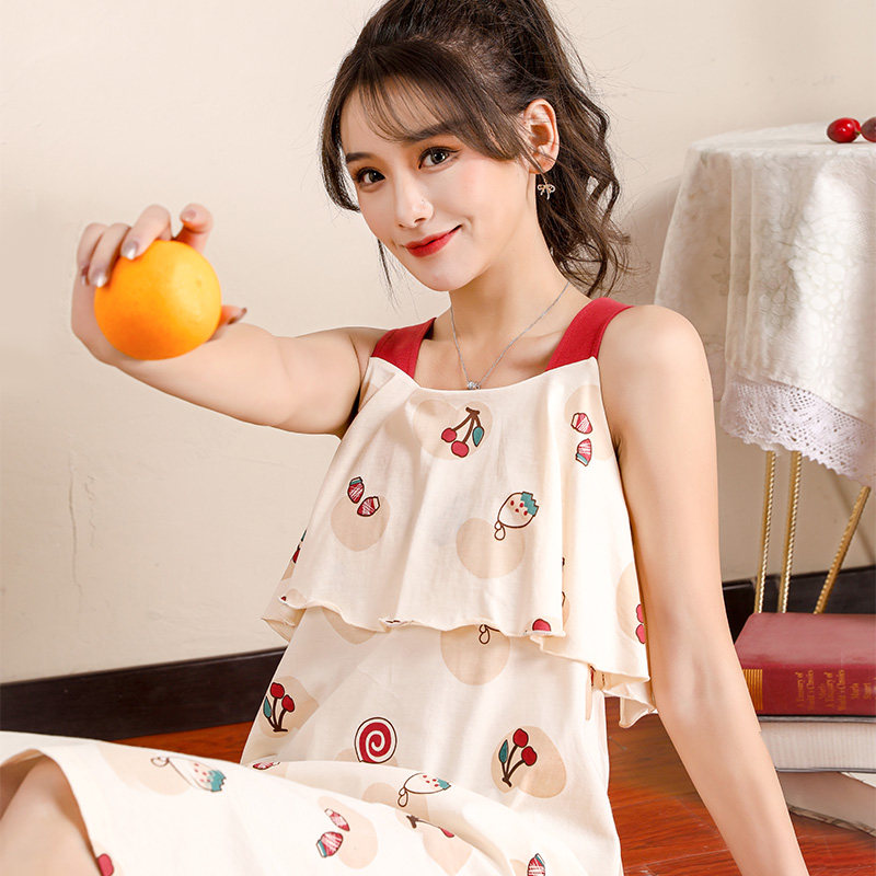 睡衣女夏款 长裙针织棉薄款 防凸点 纯棉可爱甜美大码 睡裙女吊带夏季
