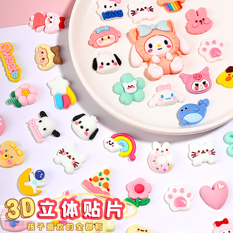 树脂配件diy咕卡小配件3D立体卡通古卡贴片diy糖粒彩色珠子贴纸装 库咔 饰咕卡盘奶油胶补充材料包女孩儿童套装