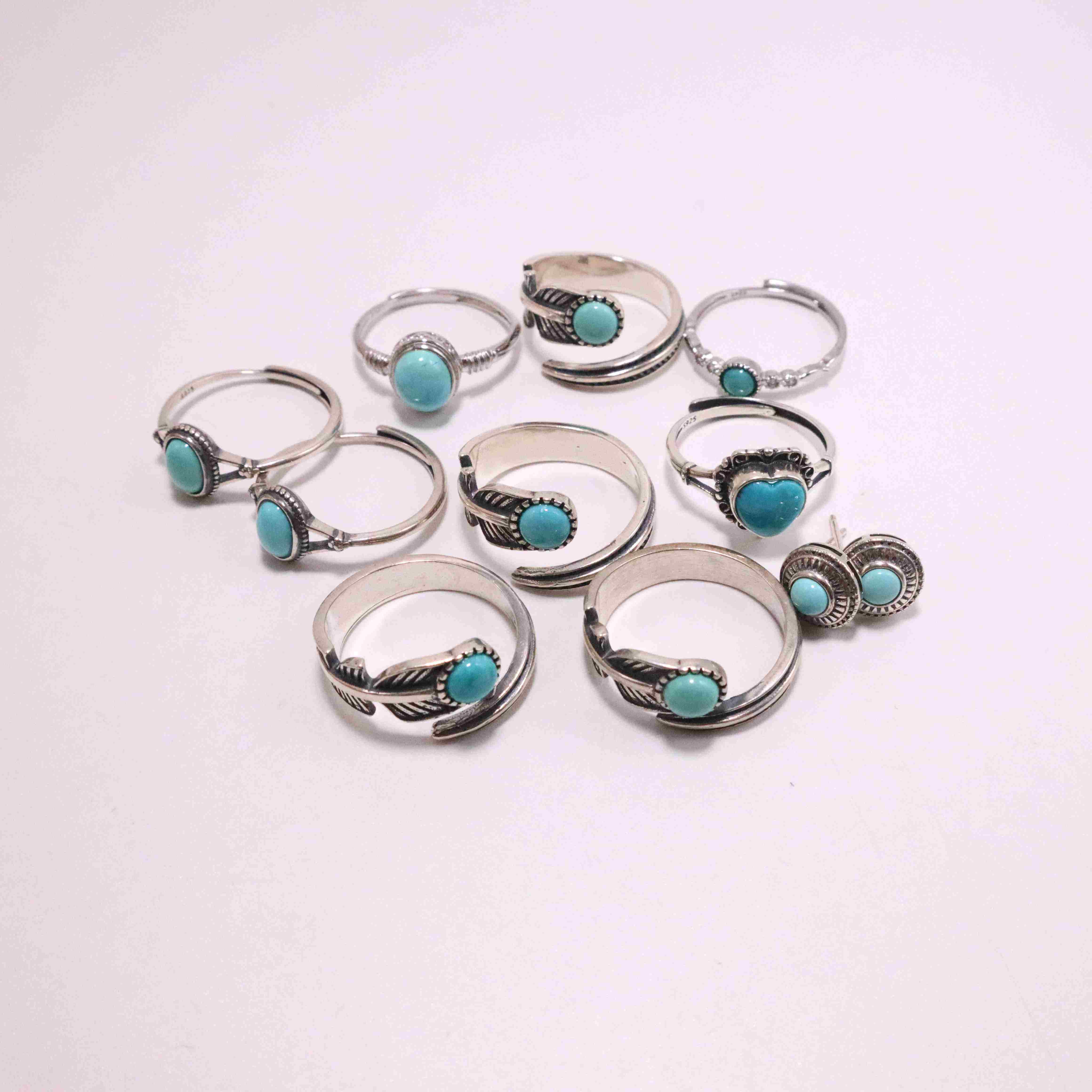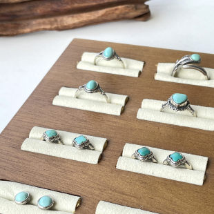 原矿无优化绿松石蜜蜡戒指耳环耳钉925银镶嵌 饰品配饰蛋面活扣
