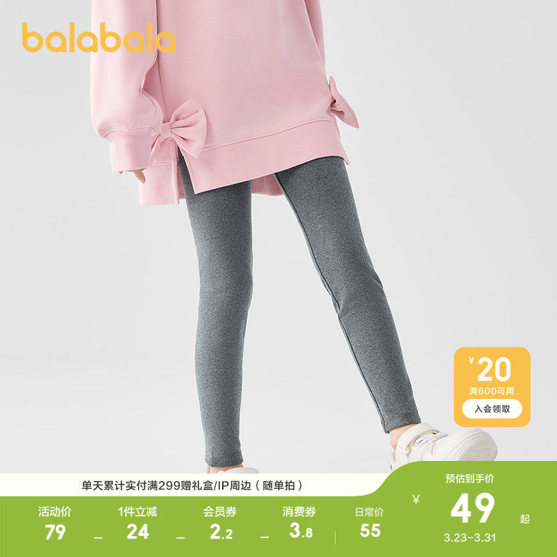 休闲加绒百搭弹力长裤 女童2026秋冬装 子潮 儿童打底裤 巴拉巴拉童装