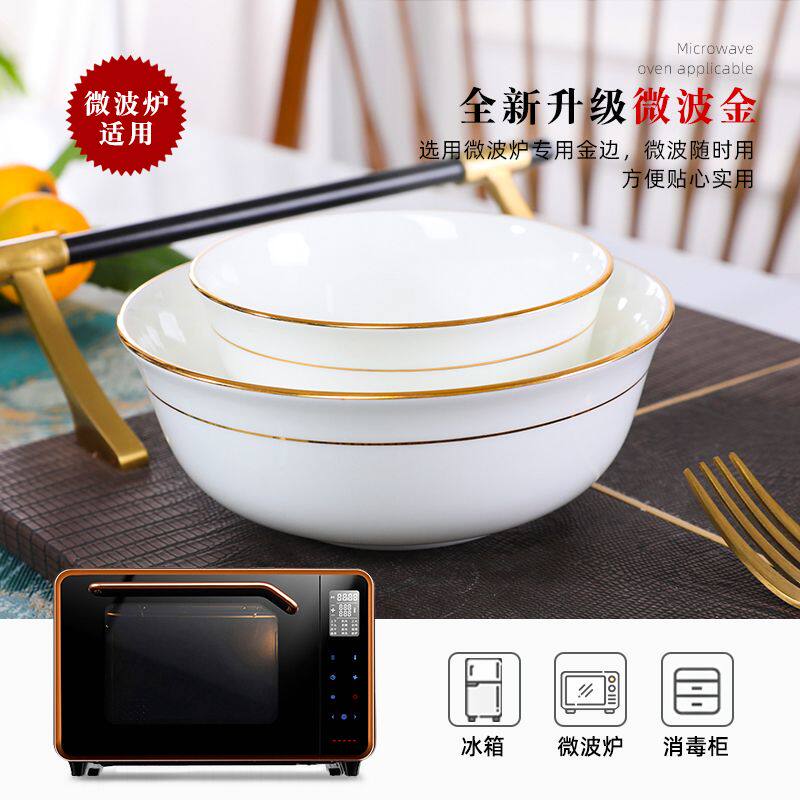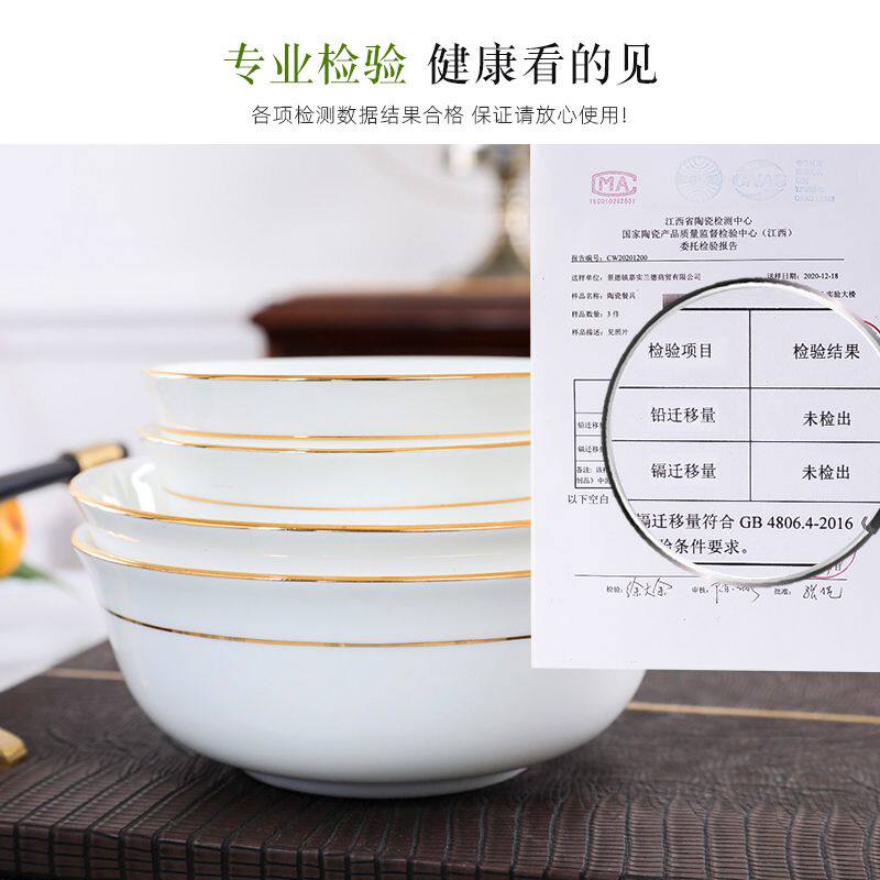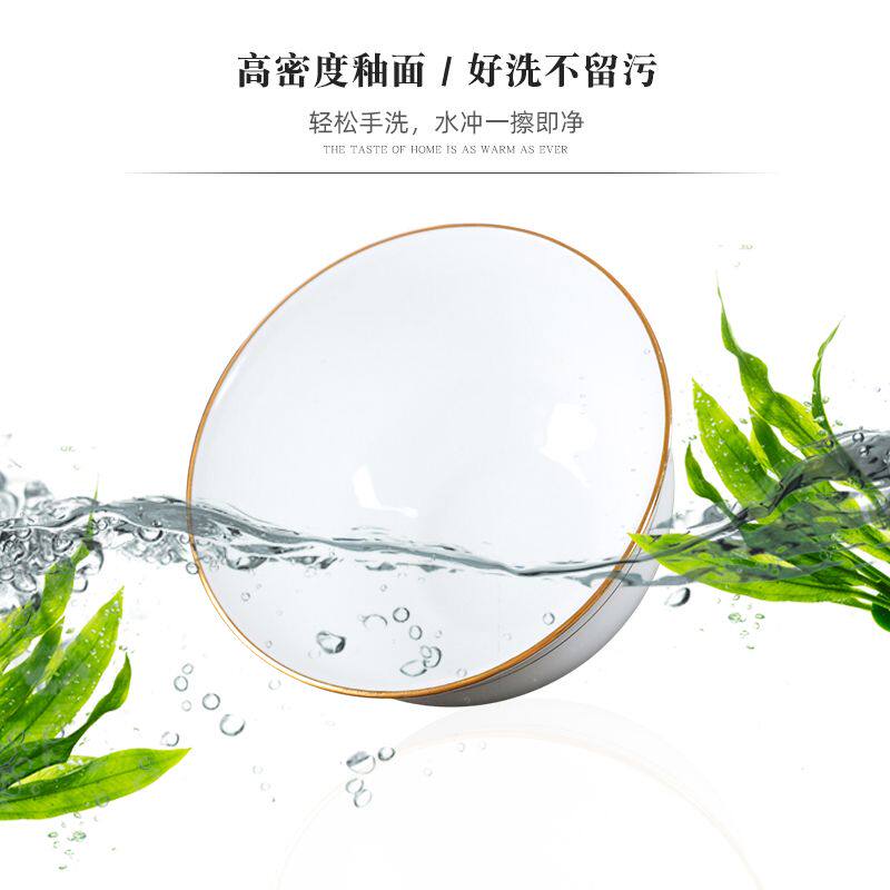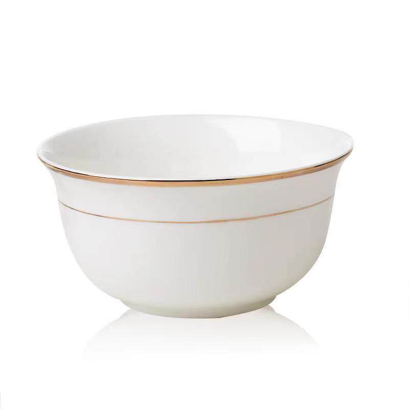 金边骨瓷碗家用米饭碗4.5 6英寸白瓷碗景德镇陶瓷餐具金钟碗面碗