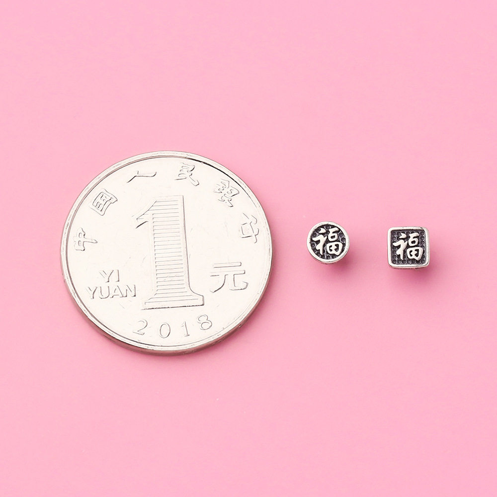 S925纯银泰银福字纽扣项链链接扣尾扣配件DIY手工编绳手链材料包